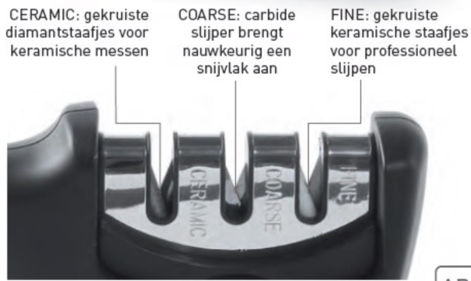 3 functies voor het slijpen van diverse messen, ook keramische.