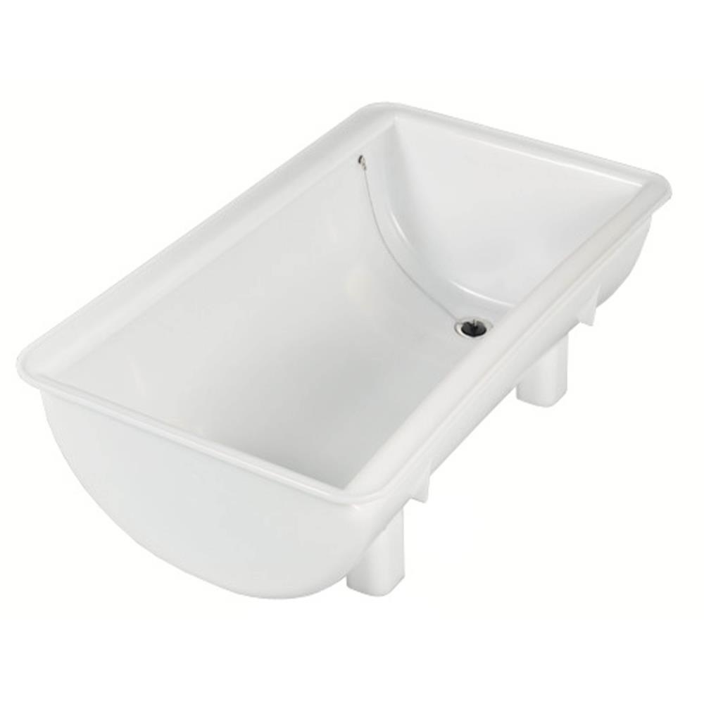Spoelbak (980 x 550 x H 310 mm - 100 liter) - voorzien van afvoerplug met stop (aan ketting). De onderzijde van de spoelbak is voorzien van 4 pootopnames. Voor plaatsing in een muurbeugel of op (tafel)onderstellen; al dan niet verrijdbaar. Wordt veel ingezet als lichte spoelbak in flexibele of mobiele opstellingen.