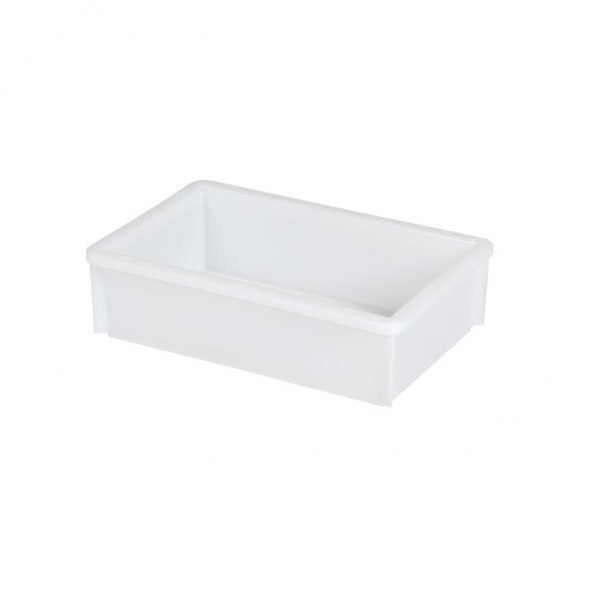 Stapelbak (450 x 295 x H 125 mm - 10 liter) in naturelwit of grijs. Geheel gesloten uitvoering, met een gladde bodem. De handgrepen zijn geïntegreerd in de bovenrand. Robuuste bak, die zijn sterkte krijgt door de wanddikte en materiaaltoepassing. Hierdoor kan afgezien worden van versterkingsribben op de wanden en de bodem. Het gevolg is een bak die bijzonder gemakkelijk is te reinigen en vaak wordt ingezet bij hygiënische toepassingen in de vlees- of vissector en de farmacie.