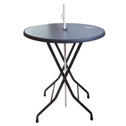 Deze statafel heeft een hamerslag grijs frame en is eenvoudig open en dicht te klappen. Door de aanwezige voetsteun is de statafel New York een heerlijke hangtafel. De statafel heeft een parasoldoorvoer met afsluitdop.