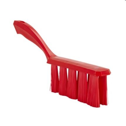 Medium Vikan handveger (45853) in Ultra Safe Technology design. De borstel is zeer geschikt voor het opvegen van droge/licht vochtige stoffen van transportbanden, voedselbereidingsplekken, tafels en machines in high-risk omgevingen. Het speciale patroon van de vezelbezetting zorgt voor een effectieve schoonmaak. Na het gebruik is de borstel snel en grondig te reinigen. De Vikan handveger is bestand tegen temperaturen tot 121 °C